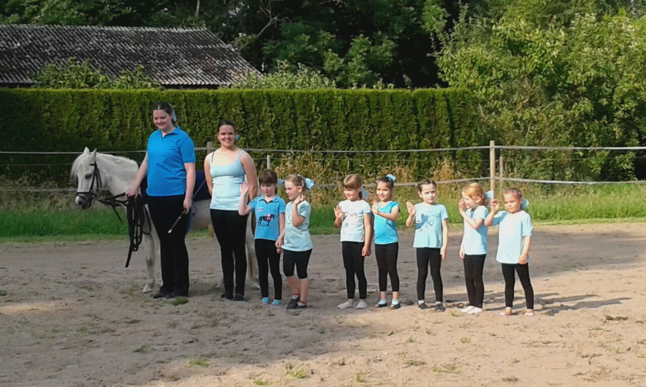Aber auch viele Andere trugen zum Gelingen des Festes bei, bei denen wir uns als Vorstand natürlich auch ganz herzlich bedanken möchten: dem Posaunenchor, der die musikalische Begleitung für den Festakt lieferte, den kleinsten Voltigiererinnen unseres Vereins mit ihren Übungsleiterinnen Alina und Lisa für die Vorführung auf Dusty, den Schwingenfeldern sowie unserer Reitlehrerin Sabine für die Reitvorführungen, den Betreuerinnen des Buttonstandes und des Kinderschminkens, der Aufsicht an der Hüpfburg, dem Tresenpersonal, den Essensausgebern und nicht zuletzt den Tellerwäschern.